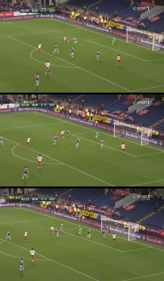 τραγικό λάθος τής άμυνας τού Ολυμπιακού, η εστία κενή,