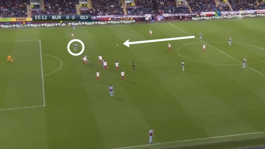 να παίρνει τη μπάλα πίσω από την άμυνα τού Ολυμπιακού.
