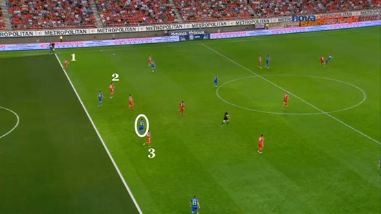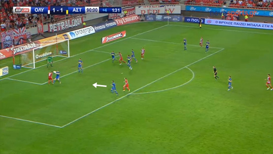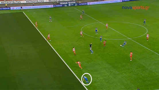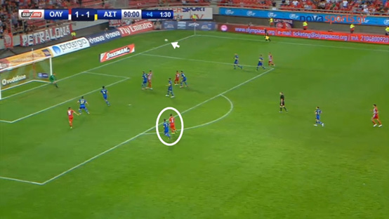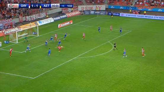 ότι όλοι οι παίκτες των «ερυθρολεύκων» που βρίσκονται στην αντίπαλη περιοχή,
