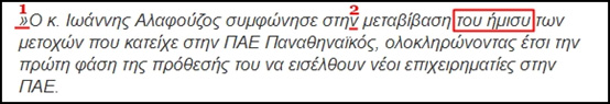 είναι σαφές ότι η μεταβίβαση τού ημίσεος των μετοχών τού Αλαφούζου