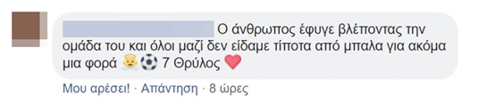 υπήρξε ανάρτηση για τον οπαδό τής ομάδας που έχασε τη ζωή του στο γήπεδο