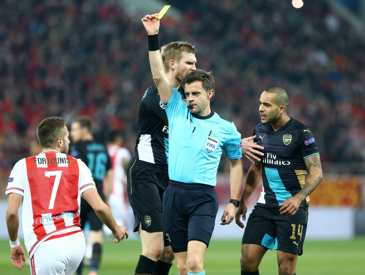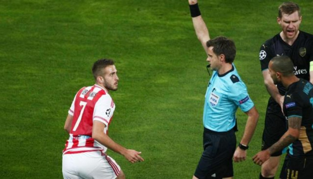δείχνει την κίτρινη στον Φορτούνη ενώ αυτός είναι ακόμη κάτω.