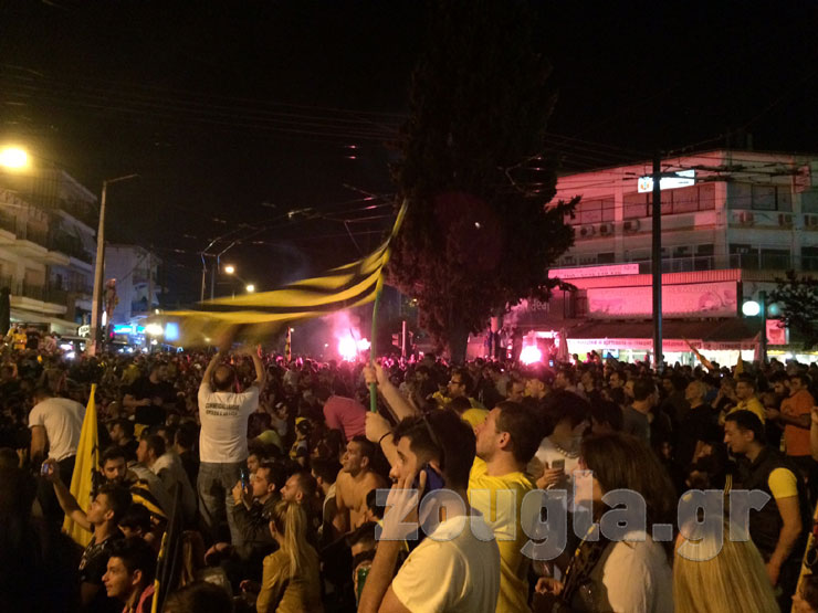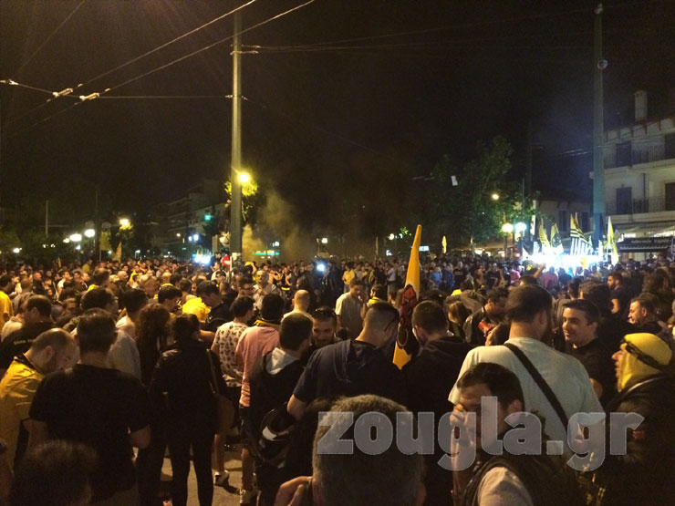 Λίγο μετά το σφύριγμα της λήξης του τελικού του Κυπέλλου που βρήκε την ΑΕΚ θριαμβεύτρια επί του Ολυμπιακού στο ΟΑΚΑ, ξεκίνησαν να βγαίνουν οι φίλαθλοι των κιτρινόμαυρων στους δρόμους της Νέας Φιλαδέλφειας για να πανηγυρίσουν.