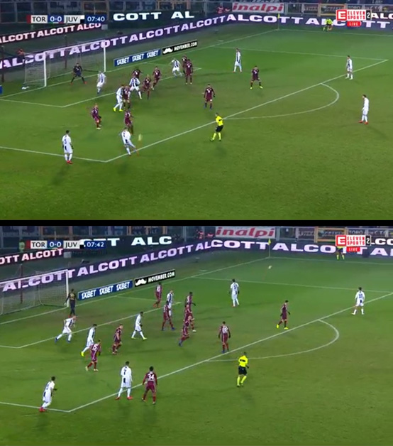 Στο 8ο λεπτό η «Γιούβε» έχει κερδίσει φάουλ έξω από την αντίπαλη περιοχή·