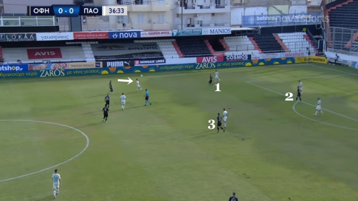 ότι τρεις συμπαίκτες του βόσκουν ανενόχλητοι στην αντίπαλη άμυνα