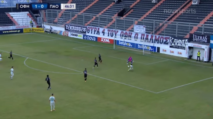το δεύτερο γκολ τού Ο.Φ.Η. ξεκινάει από μία εύκολη φάση,