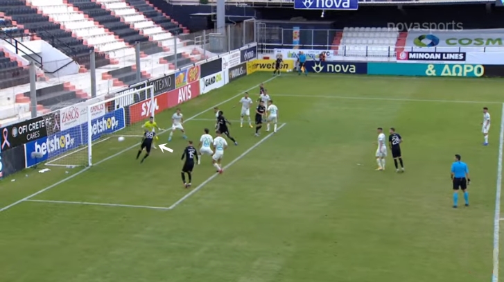 (αυτό το κόρνερ αποφέρει το 2-1 για την κρητική ομάδα).