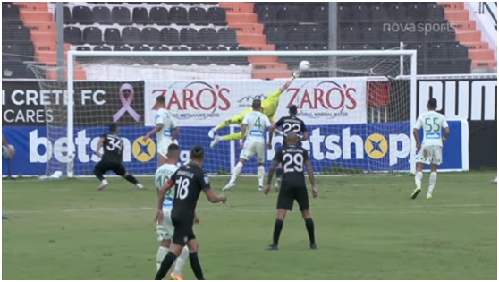 (αυτό το κόρνερ αποφέρει το 2-1 για την κρητική ομάδα).