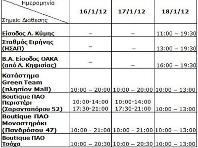 «Στην διάθεση των φιλάθλων του Παναθηναϊκού θα τεθούν από σήμερα, Δευτέρα, 16 Ιανουαρίου, τα εισιτήρια του εξ αναβολής αγώνα της 4ης αγωνιστικής του Πρωταθλήματος Superleague, ΠΑΝΑΘΗΝΑΪΚΟΣ – ΔΟΞΑ ΔΡΑΜΑΣ που θα διεξαχθεί στις 18/1/2012, στο Ολυμπιακό Στάδιο.