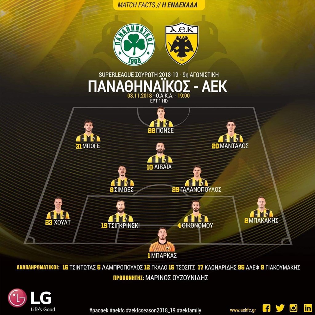 ΑΕΚ (Μαρίνος Ουζουνίδης): Μπάρκας, Μπακάκης, Οικονόμου, Τσιγκρίνσκι, Χουλτ, Γαλανόπουλος (81΄ Αλεφ), Σιμόες, Μάνταλος, Λιβάγια, Μπογέ (72΄ Γκάλο), Πόνσε (78΄ Κλωναρίδης)