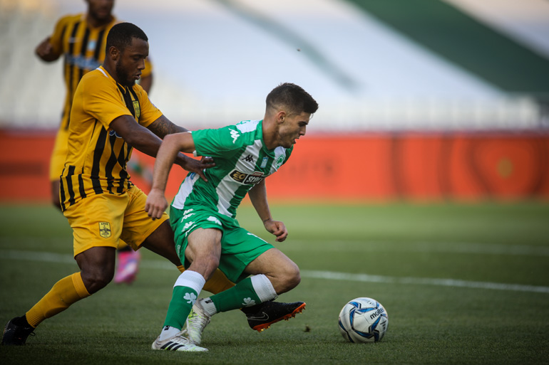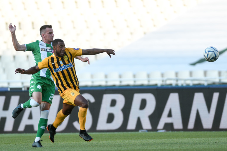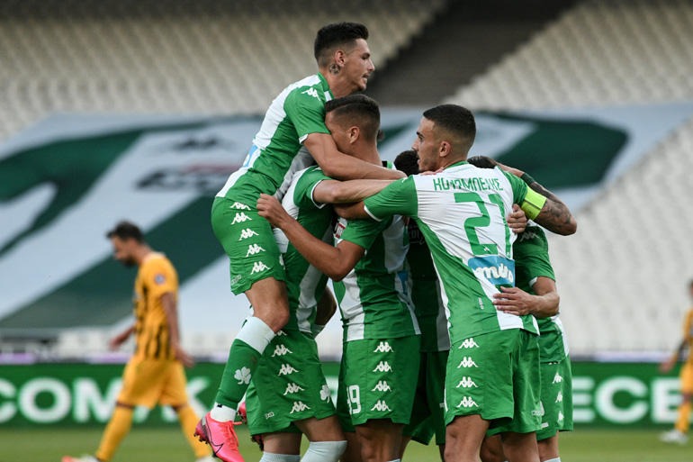 Ο Παναθηναϊκός επικράτησε 2-0 του Άρη στο ΟΑΚΑ, σε παιχνίδι για την 5η αγωνιστική των πλέι οφ της Super League και πανηγύρισε την πρώτη του νίκη στο δεύτερο σκέλος του πρωταθλήματος. Τα γκολ σημείωσαν στο 41’ ο Κουρμπέλης και στο 88’ ο Κολοβέτσιος, ενώ στο 50’ είχε δοκάρι ο Καμπετσής, που του ακυρώθηκε και τέρμα με την χρήση VAR. Ο Άρης που κατέβηκε με 14 ποδοσφαιριστές, λόγω των αποδεσμεύσεων, έχασε τον Ντουάρτε με τραυματισμό.
