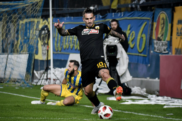 Η ΑΕΚ μείωσε στο 77΄ με κεφαλιά από κοντά του Σιμόες από μεταβίβαση του Πόνσε, σε μια φάση οριακή για τον Πορτογάλο, που ίσως να ήταν οφσάιντ.