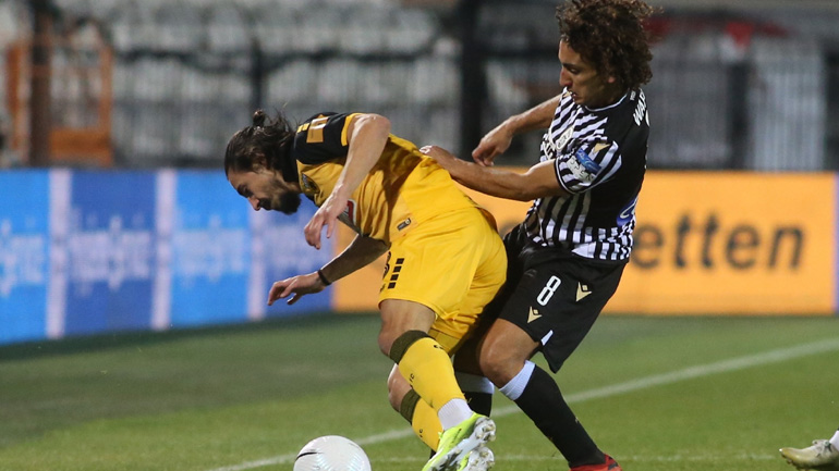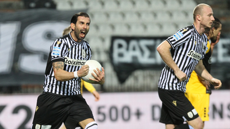 Οι «ασπρόμαυροι» κέρδισαν έμμεσο, ύστερα από λάθος του Αθανασιάδη, που μπλόκαρε μετά το γύρισμα του Λάτσι με το πόδι, με τον Ζίβκοβιτς να το εκτελεί, πατώντας την μπάλα στον Βιεϊρίνια, ο οποίος έκανε το σουτ και την έστειλε στα δίχτυα των φιλοξενούμενων.
