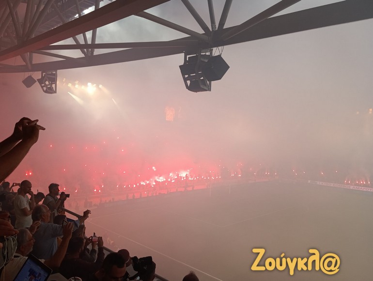 Ο κόσμος έδωσε απίστευτη ώθηση στην ΑΕΚ που είχε τον απόλυτο έλεγχο, απέναντι στην κατά τεκμήριο (βλ. βαθμολογία) χειρότερη ομάδα της λίγκας. Οι Νικαιώτες από την πλευρά τους περιορίστηκαν σε ρόλο κομπάρσου, απλού καλεσμένου στο πάρτι της ΑΕΚ, έχοντας ωστόσο ως «ελαφρυντικό» τις πολλές και σημαντικότατες απουσίες (Τσιγκρίνσκι, Άοσμαν). Το 2-0 με το οποίο έκλεισε το ημίχρονο δεν αποτελούσε απαγορευτικό σκορ για τους φιλοξενούμενους, όμως ήταν τέτοια η εικόνα του παιχνιδιού που δεν μπορούσαν να περιμένουν και πολλά, από τη στιγμή που στα πρώτα 45 λεπτά δεν πάτησαν την περιοχή του Στάνκοβιτς, ούτε πραγματοποίησαν τελική προσπάθεια.