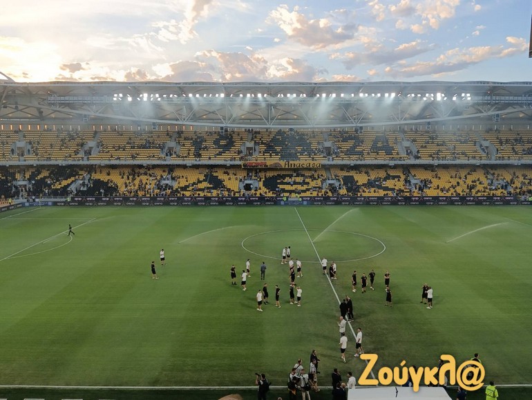 Ο αγώνας ξεκίνησε με πολύ γρήγορο γκολ, μόλις στο 6ο λεπτό. Ο Γκατσίνοβιτς σούταρε η μπάλα κόντραρε στον Τσιριγώτη και στρώθηκε ξανά στον χαφ της ΑΕΚ, ο οποίος με εξαιρετικό φαλτσαριστό δεξί πανηγύρισε το πρώτο του γκολ με τα κιτρινόμαυρα, αλλά και παράλληλα έγινε και ο πρώτος σκόρερ της Ένωσης στην «OPAP Arena».