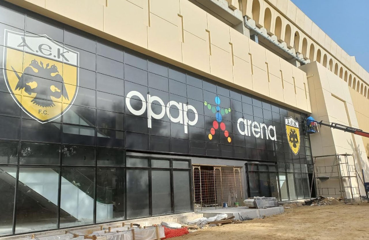 Πλάι στο σήμα της ΑΕΚ φιλοξενείται πλέον το επίσημο όνομα του γηπέδου, η «OPAP ARENA», με τις εργασίες να εξελίσσονται με ταχύτατους ρυθμούς τις τελευταίες ημέρες, και το πρώτο από τα συνολικά τέσσερα σημεία όπου θα αναγράφεται το όνομα «OPAP ARENA» να έχει ήδη ολοκληρωθεί στην πλευρά όπου θα βρίσκονται οι θέσεις των επισήμων του γηπέδου.