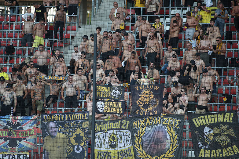 Πριν από τη σέντρα του αγώνα, οι φίλοι της Ένωσης φώναξαν συνθήματα κατά του Ισραήλ και υπέρ της Παλαιστίνης, με το «Free Palestine» να ακούγεται δυνατά από την εξέδρα. Το περιστατικό έρχεται λίγο μετά την τιμωρία της ΑΕΚ από την UEFA, λόγω των παλαιστινιακών σημαιών που είχαν αναρτήσει οι οπαδοί της στο πρώτο παιχνίδι στην OPAP Arena.