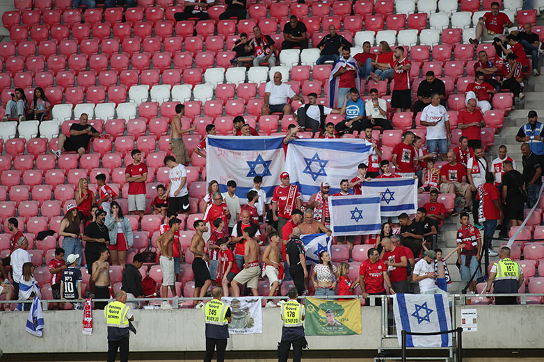 Κατά τη διάρκεια των συνθημάτων, από τα μεγάφωνα του γηπέδου άρχισε να παίζει δυνατά μουσική, σε μια προσπάθεια των ιθυνόντων της ισραηλινής ομάδας να καλυφθούν οι φωνές. Ωστόσο, μόλις τα τραγούδια σταμάτησαν, οι φίλοι της ΑΕΚ συνέχισαν ξανά τα συνθήματα, δείχνοντας ότι ήθελαν το μήνυμά τους να ακουστεί καθαρά.