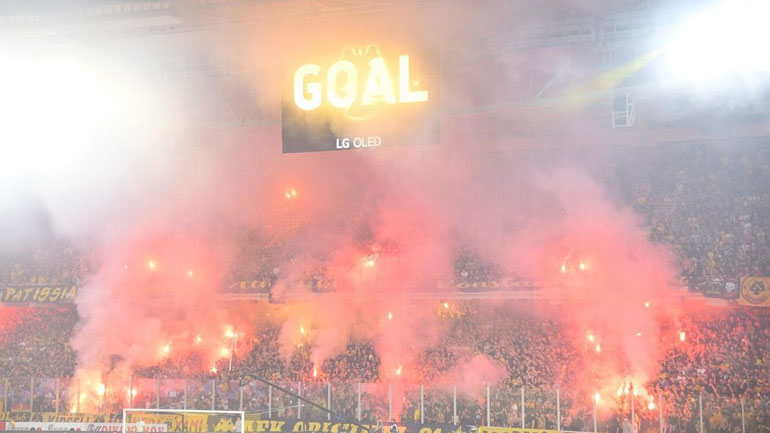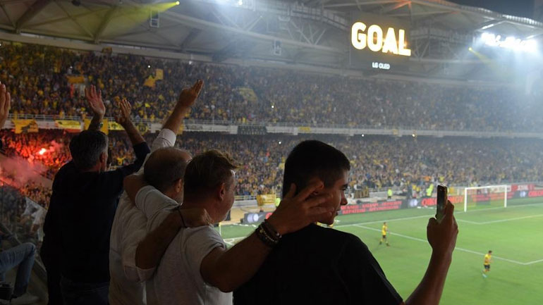 Τα γκολ της Ένωσης πανηγύρισαν ξέφρενα οι 32.000 φίλαθλοι που γέμισαν ασφυκτικά το γήπεδο, για δεύτερη φορά μετά τα εγκαίνια της 30ης Σεπτεμβρίου. Ανάμεσά τους ήμασταν κι εμείς.