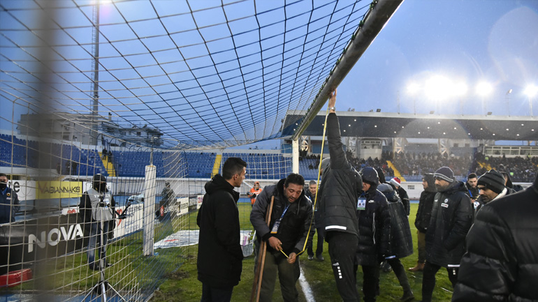 Οι γηπεδούχοι είχαν χρονικό περιθώριο για να διορθωθεί το πρόβλημα που είχε προκύψει μέχρι τις 18:00. Τότε ο διαιτητής Μανούχος, συνοδευόμενος από τους βοηθούς του, βγήκε και πάλι στο γήπεδο και έκανε αυτοψία στην εστία, ενώ στη συνέχεια επέστρεψε στα αποδυτήρια, όπου έκανε γνωστή την απόφασή του για αναβολή του ματς.
