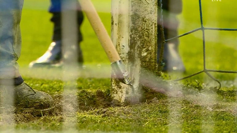 Ακολούθως οι άνθρωποι του γηπέδου προσπάθησαν να διορθώσουν το σφάλμα με το ύψος της εστίας.