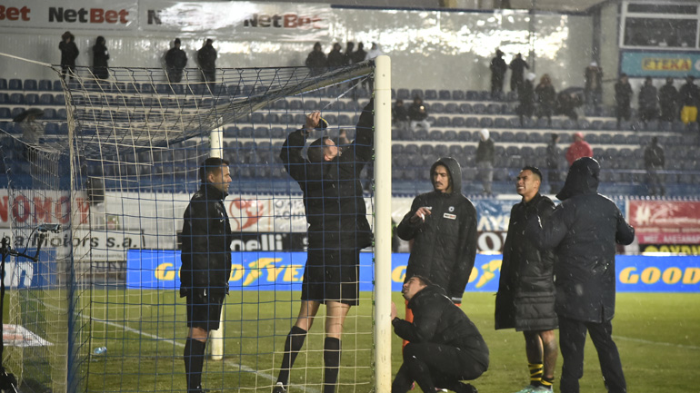 Πλέον η τύχη της αναμέτρησης, η οποία επρόκειτο να ξεκινήσει στις 17:30 θα κριθεί στον αθλητικό δικαστή.