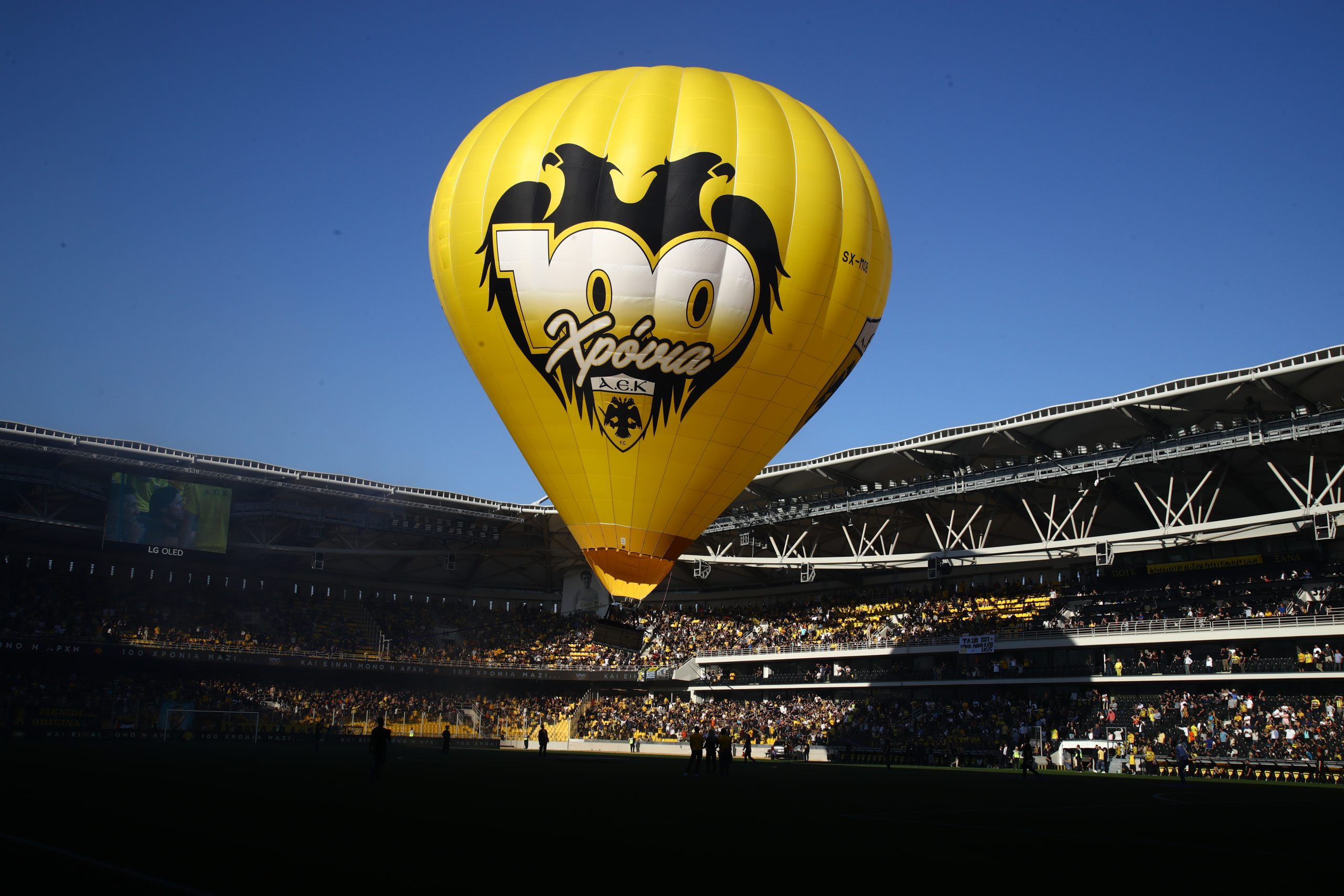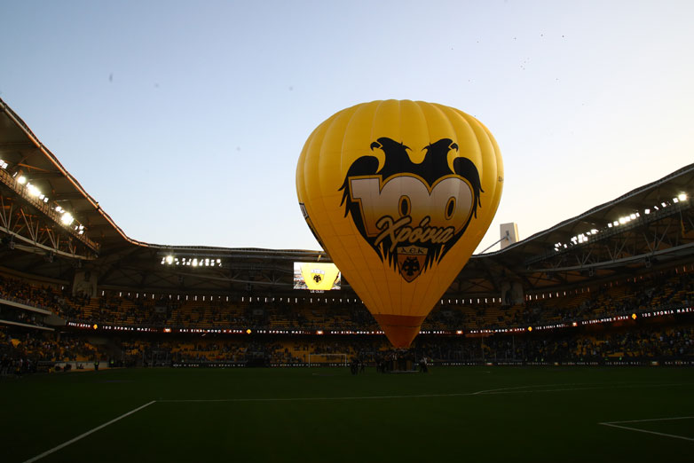 Στις 16:00 άνοιξαν οι θύρες της OPAP Arena και οι εορτασμοί κορυφώθηκαν με το αερόστατο των 100 χρόνων της ΑΕΚ να κλέβει την παράσταση. Στο γήπεδο βρέθηκε τόσο η ομάδα των νταμπλούχων Ελλάδας, όσο και οι ζωντανοί θρύλοι του «δικεφάλου».