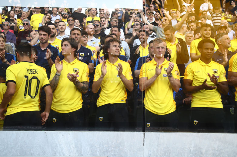 Νωρίτερα, ο κόσμος είχε γιορτάσει γύρω από την «Αγιά Σοφιά» μαζί με την οικογένεια της ΠΑΕ ΑΕΚ, ποδοσφαιριστές της πρώτης ομάδας, παράγοντες και παλαίμαχους.