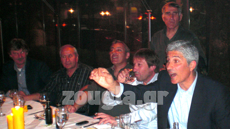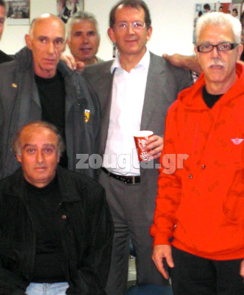 Ο Λάκης Νικολάου, πλαισιώνεται από άσους της δεκαετίας 1970-80, που πήρε τίτλους και έφτασε την ΑΕΚ στους «4» του Κυπέλλου ΟΥΕΦΑ στην Ευρώπη. Καθιστός, ο αείμνηστος Τάσος Κωνσταντίνου, δίπλα του ο Μπάμπης Ιντζόγλου, και πίσω οι Γιάννης Μουσούρης, Χρήστος Αρδίζογλου
