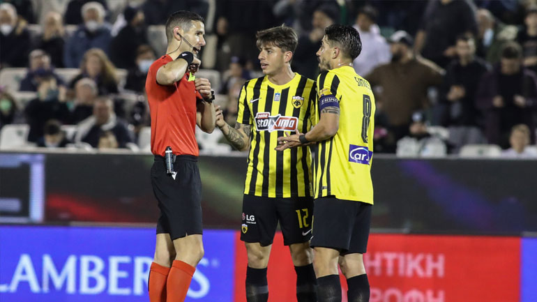 Στο 13΄, όμως, σε ένα γύρισμα του Αλεξανδρόπουλου από τα αριστερά, ο Ρότα έπεσε άτσαλα πάνω του και τον βρήκε με τις τάπες, αφότου ο μέσος του Παναθηναϊκού είχε βγάλει τη σέντρα. Ο Πορτογαλός διαιτητής Νόμπρε είδε τη φάση στο μόνιτορ και καταλόγισε πέναλτι, το οποίο αξιοποίησε στο 16΄ ο Αϊτόρ και άνοιξε το σκορ.