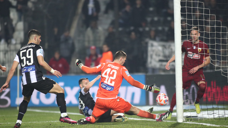 Η ΑΕΚ ανέβασε την απόδοσή της, πίεσε, κέρδισε συνεχόμενα κόρνερ, φτάνοντας κοντά στην ισοφάριση στο 22′, με τον Ντόμινικ Κοτάρσκι να αποκρούει το διαγώνιο σουτ του Ορμπελίν Πινέδα.
