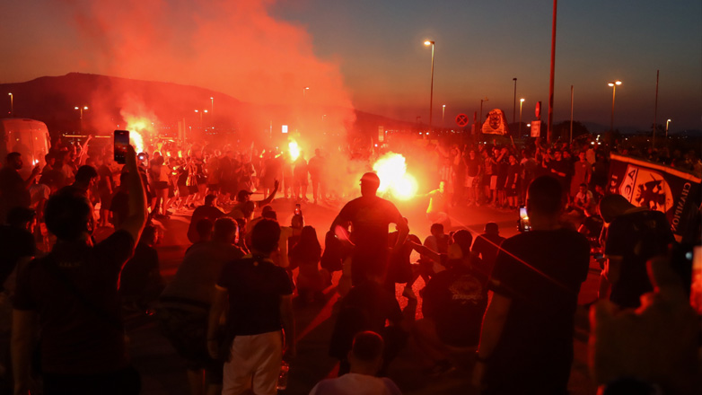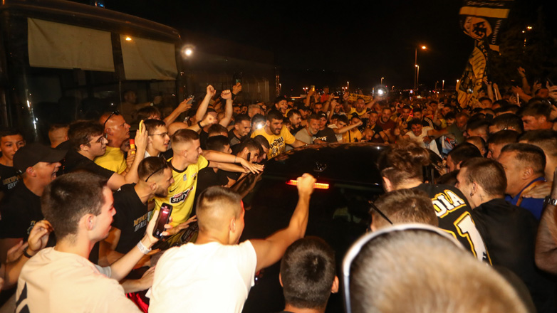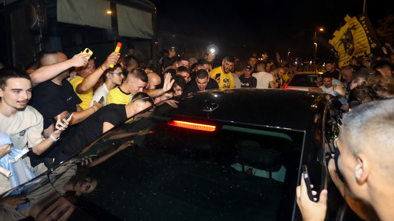 Ο κόσμος της ΑΕΚ περίμενε υπομονετικά τον Λαμέλα και μόλις το αυτοκίνητο που τον πήρε απ’ την πίστα πέρασε απ’ τον κλοιό των οχημάτων της Αστυνομίας, η… νύχτα έγινε μέρα στο αεροδρόμιο, με τον Αργεντινό να γνωρίζει την αποθέωση.