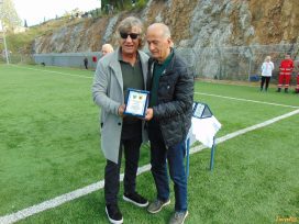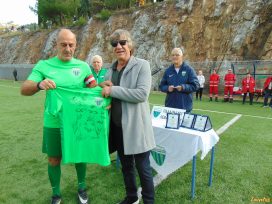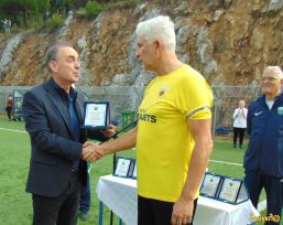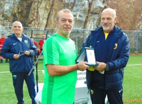 Ο Ντίνος Χάνιος, που είχε αγωνιστεί στην ΑΕΚ, τίμησε εκ μέρους του Λεβαδειακού, τον αρχισκόρερ του ελληνικού ποδοσφαίρου, Θωμά Μαύρο