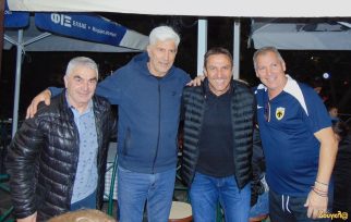 Πέντε ιστορικές μορφές που πέρασαν από την ΑΕΚ τη δεκαετία του 1960 βρέθηκαν στη Λειβαδιά. Διακρίνονται οι Γ. Καραφέσκος, Κ.Χάνιος, Γ. Κεφαλίδη, Απ. Τόσκας και Κ. Πεσιρίδης