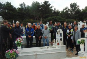 Η αποστολή των Βετεράνων της ΑΕΚ στο τρισάγιο που παρατέθηκε στην τελευταία κατοικία του Μανώλη Παπαδόπουλου στο Μάζι