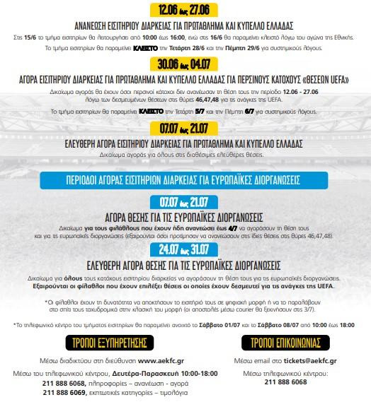 Υποχρεωτική για την αγορά του εισιτηρίου διαρκείας είναι όπως και τα προηγούμενα χρόνια η αγορά της Κάρτας Φίλου ΑΕΚ με τα έσοδα να πηγαίνουν αποκλειστικά στο ερασιτεχνικό σωματείο. Είναι το ελάχιστο που μπορούμε να κάνουμε για τη Μάνα ΑΕΚ, αφού τα χρήματα αυτά καλύπτουν μέρος από τις ανάγκες των δεκάδων ερασιτεχνικών τμημάτων μας.