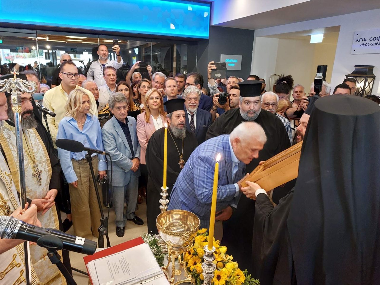 Με τη δέουσα λαμπρότητα και επισημότητα τελέσθηκε το απόγευμα της Δευτέρας 29 Μαΐου 2023 η ακολουθία των Θυρανοιξίων του νέου περικαλλούς Ιερού Παρεκκλησίου της Αγίας Σοφίας και του Οσίου Λουκά του εν Στειρίω που βρίσκεται εντός του νέου γηπέδου της ΑΕΚ OPAP ARENA στη Νέα Φιλαδέλφεια.
