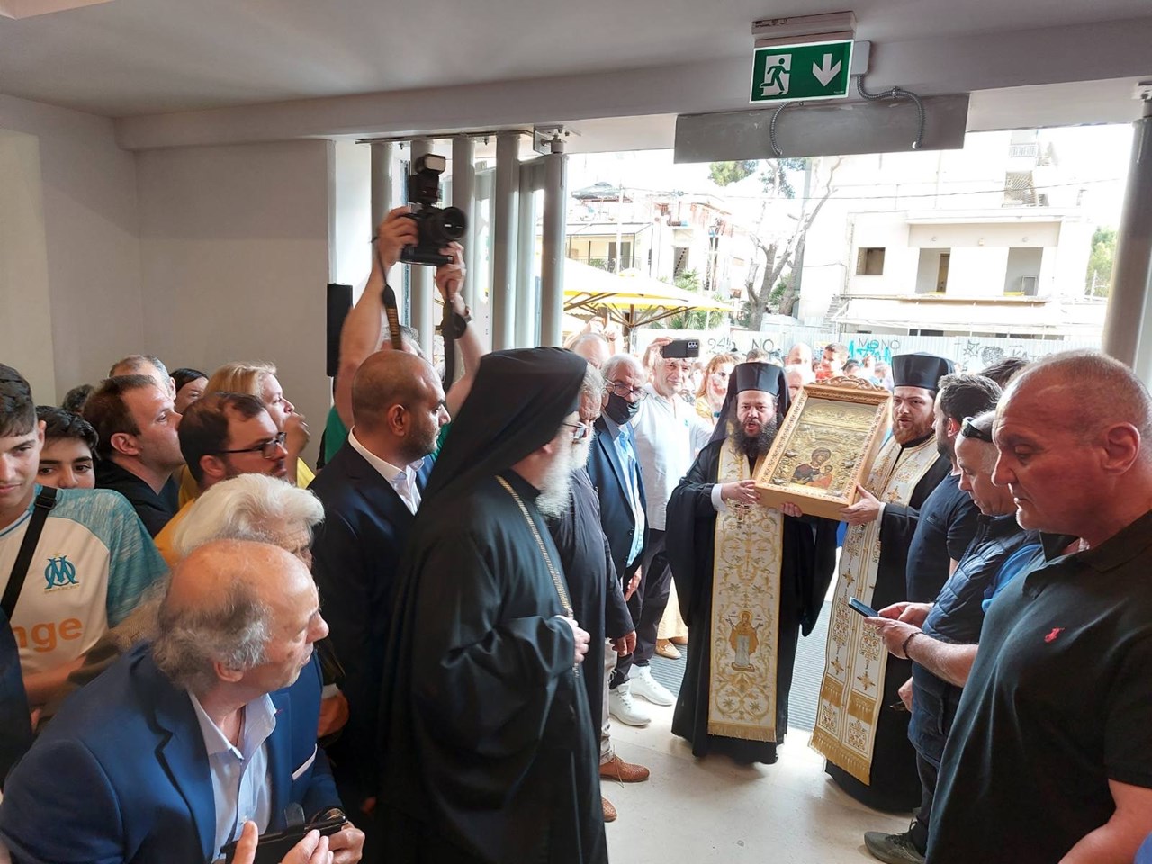 Την τελετή των Θυρανοιξίων τέλεσε ο Σεβασμιώτατος Μητροπολίτης Νέας Ιωνίας, Φιλαδελφείας, Ηρακλείου και Χαλκηδόνος κ. Γαβριήλ, πλαισιωμένος από κληρικούς της Ιεράς Μητροπόλεως, παρουσία του μεγαλομέτοχου της ΠΑΕ ΑΕΚ κ. Δημητρίου Μελισσανίδη και μελών του Δ.Σ. της ΠΑΕ ΑΕΚ, της πρ. Υφυπουργού Υγείας κ. Ζωής Ράπτη, του Δημάρχου Ν. Φιλαδέλφειας-Ν. Χαλκηδόνας κ. Ιωάννη Βούρου, της Δημάρχου Νέας Ιωνίας κ. Δέσποινας Θωμαΐδου, μελών του Δημοτικού και των Κοινοτικών Συμβουλίων του Δήμου Ν. Φιλαδέλφειας-Ν. Χαλκηδόνας, μελών του Δ.Σ. του Συνδέσμου Παλαιμάχων της ΑΕΚ, εκπροσώπων προσφυγικών σωματείων, φορέων της πόλεως και μεγάλου αριθμού φιλάθλων που ήλθαν από διάφορα μέρη της Ελλάδος για να συμμετάσχουν στην τελετή.
