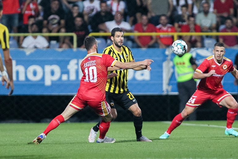 Όμως η «απάντηση» των γηπεδούχων ήταν άμεση με απίστευτο σουτ του Πρσες στο 14΄. Το γκολ αυτό έδωσε ψυχολογία στους Βόσνιους που είχαν τον έλεγχο του παιχνιδιού, όμως η ΑΕΚ χάρη στην ποιότητά της μπορούσε να αλλάξει τα δεδομένα σε μια στιγμή. Ουσιαστικά το έκανε στο 42΄, όμως το γκολ του Ανσαριφάρντ ακυρώθηκε εσφαλμένα (καθώς δεν υπήρχε VAR) ως οφσάιντ.
