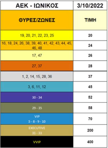 Η ΠΑΕ ΑΕΚ ανακοινώνει ότι τέθηκαν σε κυκλοφορία τα εισιτήρια για τον πρώτο επίσημο αγώνα της ομάδας μας στην OPAP ARENA, αυτόν απέναντι στον Ιωνικό, τη Δευτέρα 3 Οκτωβρίου (20.00).