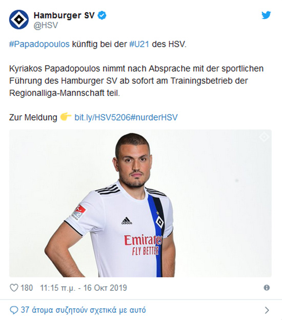 Η διοίκηση του Αμβούργου, που πλέον αγωνίζεται στη Bundesliga 2, αντέδρασε έντονα στο αίτημα του Παπαδόπουλου και μάλιστα, όπως ανακοινώθηκε, από εδώ και στο εξής ο 27χρονος στόπερ θα προπονείται με δεύτερη ομάδα.