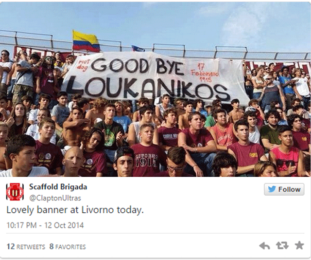 Το δικό τους «αντίο» είπαν στον «Λουκάνικο» οι οπαδοί της Λιβόρνο, καθώς ανάρτησαν πανό στο σημερινό παιχνίδι της ομάδας του με την Τραπάνι για την 8η αγωνιστική της Serie B.