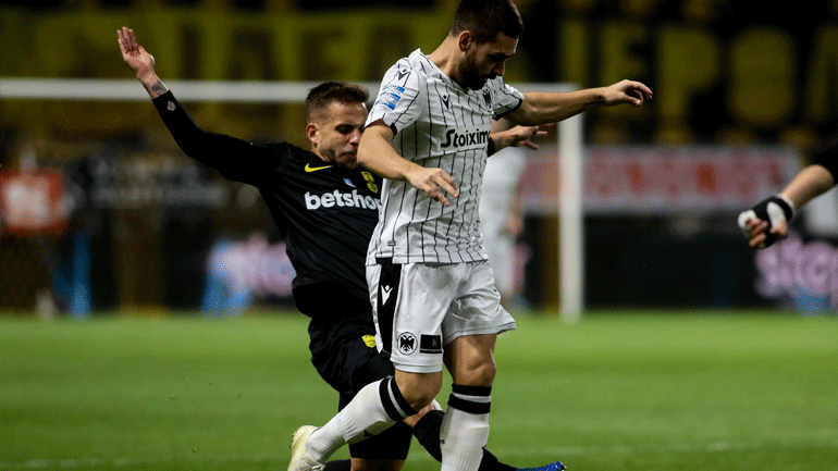 Οι «ασπρόμαυροι» πήραν την κατοχή της μπάλας, αλλά δεν μπόρεσαν να απειλήσουν ιδιαίτερα. Ένα τακουνάκι του Αντρίγια Ζίφκοβιτς βρήκε σε ετοιμότητα τον Ζάκαρι Μπουσέ ενώ μια κεφαλιά του Χρήστο Τζόλη πέρασε πάνω από τα δοκάρια του Γάλλου. Και οι παίκτες του Άκη Μάντζιου τιμώρησαν τη… φλυαρία του ΠΑΟΚ.