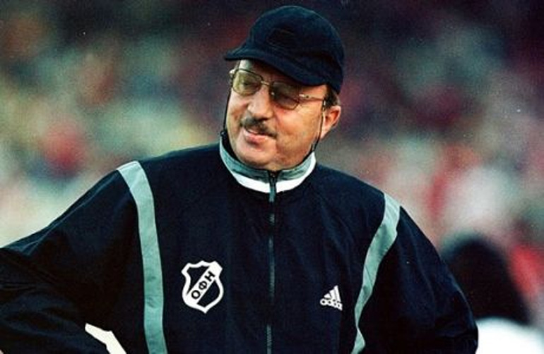 «Το 1985 ήρθε στην Κρήτη ως προπονητής του ΟΦΗ και παρέμεινε μέχρι και το 2000, αποτελώντας τον μακροβιότερο τεχνικό της ιστορίας, που κάθισε στον πάγκο μιας ομάδας στην Α’ Εθνική κατηγορία!!!