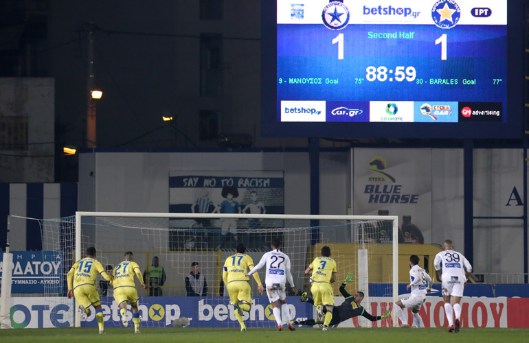 Γκολ: 76′ Μανούσος (Ατρόμητος), 78′ Μπαράλες (Αστέρας Τρίπολης), 89′ πεν. Μανούσος (Ατρόμητος)