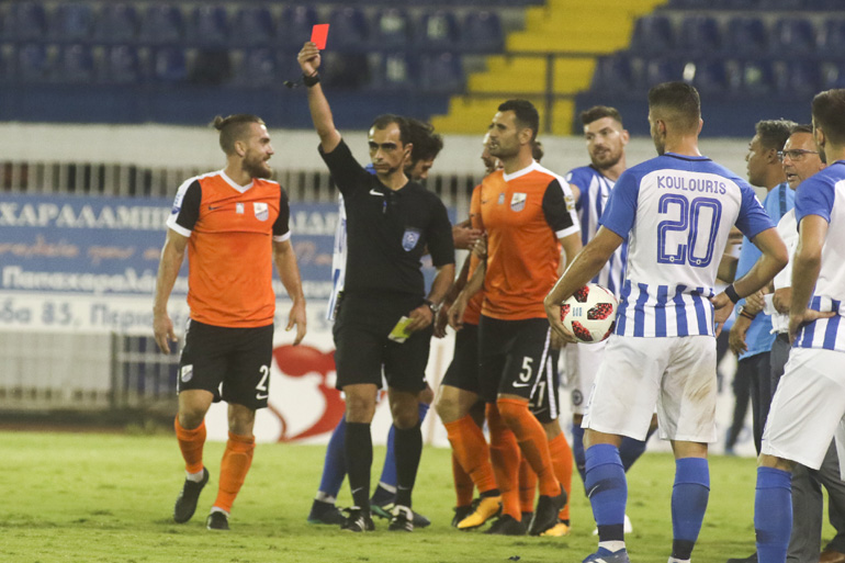 Στο 58΄ ο Δημούτσος είδε τη δεύτερη κίτρινη κάρτα του Ζαχαριάδη και άφησε την ομάδα του να πασχίσει για το υπόλοιπο του αγώνα με παίκτη λιγότερο. Ο παίκτης της Λαμίας είχε παρατηρηθεί αρχικά στο πρώτο ημίχρονο, για «θέατρο».