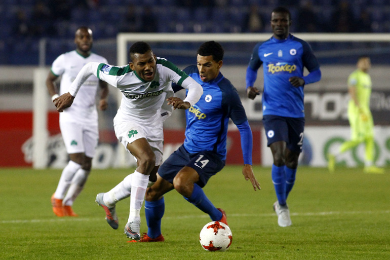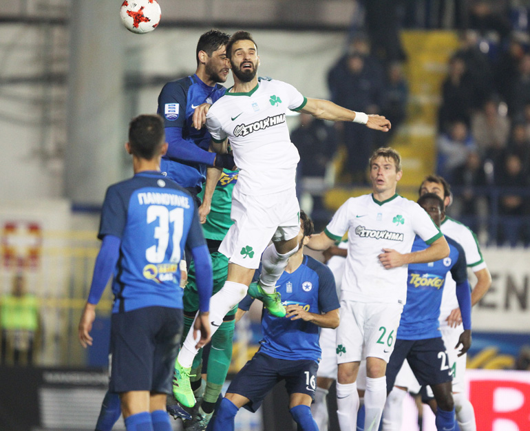 Μόλις στο 3ο λεπτό, από μπαλιά του Ντιγκινί, ο Ντάουντα με «κεραυνό» από το ύψος της περιοχής άνοιξε το σκορ, ενώ στη συνέχεια ο Διούδης αποσόβησε τα σουτ του Βασιλακάκη (14΄) και Ντάουντα (16΄). Οι «πράσινοι» ως το 20΄ έμοιαζαν να βρίσκονται σε τρικυμία και είχαν να αντιπαρατάξουν μόνο ένα άστοχο σουτ του Καμπέσας, όμως σταδιακά βελτιώθηκαν και στο 22΄ ζήτησαν πέναλτι, σε τάκλιν του Ρισβάνη στον Μολίνς. Ο Σταύρος Μάνταλος υπέδειξε τελικά την ποινή στη φάση του 30’, για σπρώξιμο του Χατζηισαϊα στον Άλτμαν. Ο Μολίνς ευστόχησε στο 30΄ και ισοφάρισε.