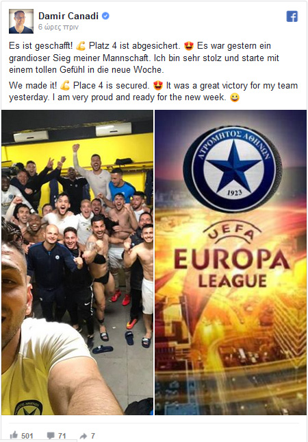Ο προπονητής του «αστεριού», Νταμίρ Κάναντι στην καθιερωμένη ανάρτησή του στον προσωπικό λογαριασμό του στο facebook, μετά από τους αγώνες της ομάδας του δήλωσε περήφανος για τους παίκτες του.