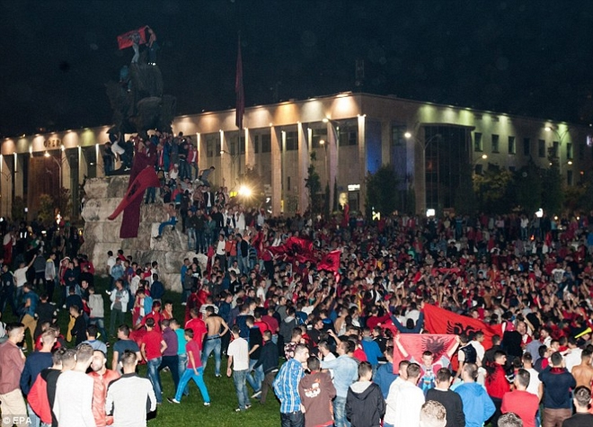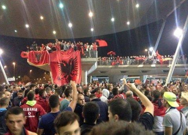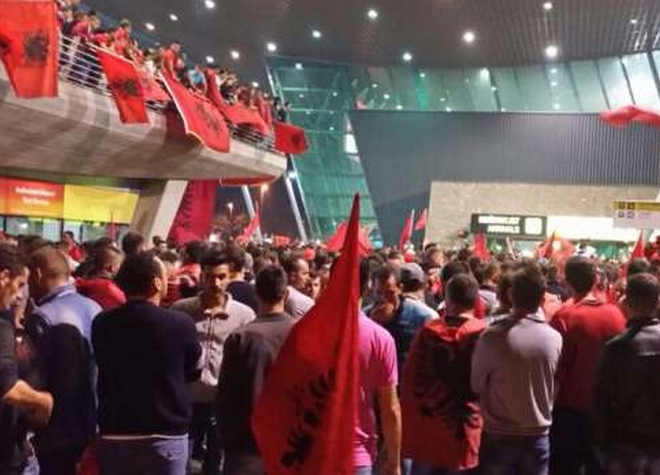 Χιλιάδες Αλβανοί και αρκετοί αλβανόφωνοι Κοσσοβάροι υποδέχτηκαν την αποστολή της Εθνικής ομάδας στο αεροδρόμιο Ρίνας, στα Τίρανα, στις 3:20 τα ξημερώματα της Τετάρτης! Όπως ανέφεραν οι συγκεντρωμένοι, οι διεθνείς ποδοσφαιριστές υπερασπίστηκαν την υπερηφάνεια της χώρας τους!