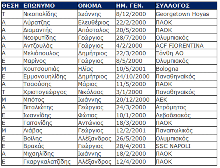 Την αποστολή της Εθνικής Νέων για την προκριματική φάση του Ευρωπαϊκού πρωταθλήματος που θα διεξαχθεί στην Βουλγαρία ανακοίνωσε ο ομοσπονδιακός τεχνικός, Γιάννης Γκούμας.